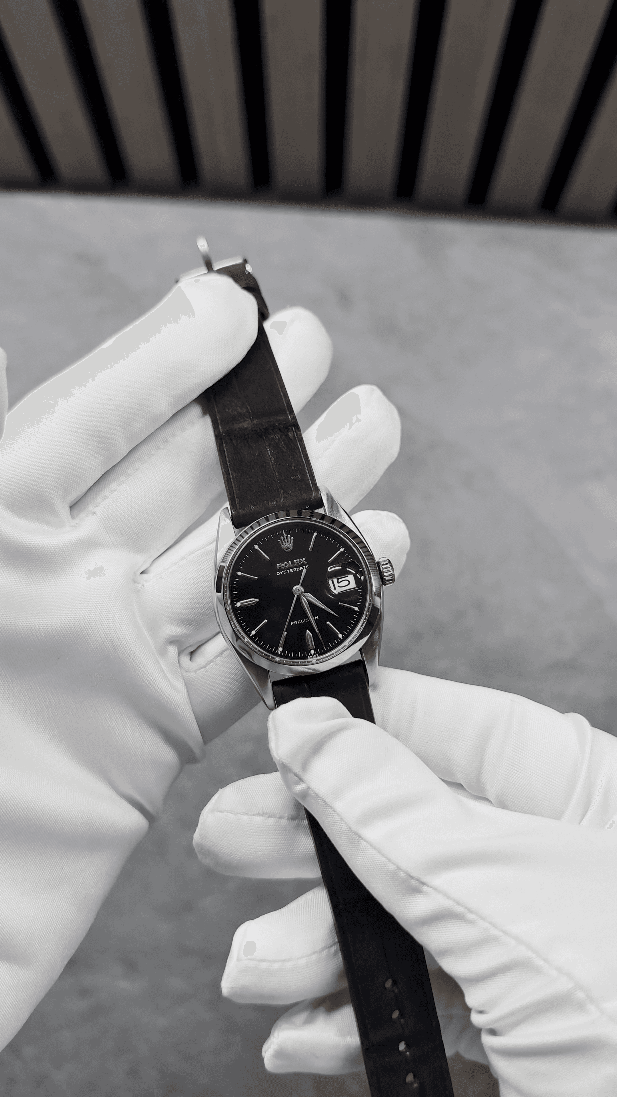 The Rolex Oysterdate 6494 is vintage Rolex in its purest, most honest form. A 34mm Oyster case paired with a sharp fluted bezel and classic Cyclops date window gives it that unmistakable mid-century presence, while the black dial — clean, balanced, and quietly confident — anchors the design in timeless restraint. Slim on the wrist and powered by a hand-wound movement, the 6494 carries a tactile charm modern pieces rarely replicate. It doesn’t try to impress; it simply endures. A refined expression of Rolex heritage, preserved in steel. Curated with intent.