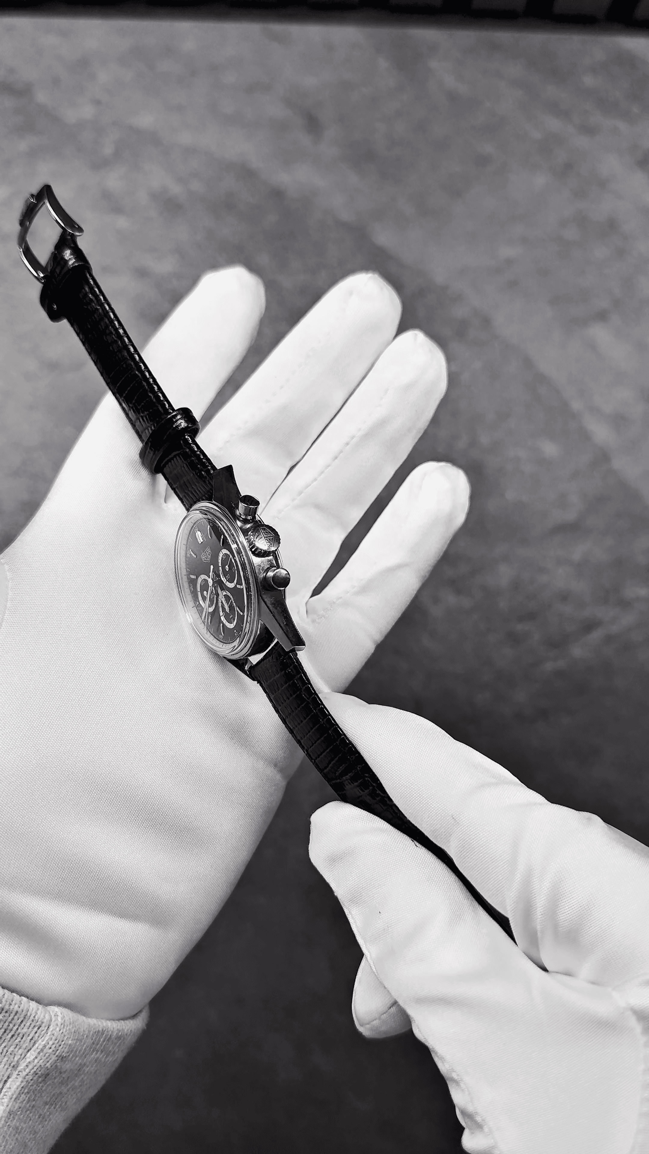 The TAG Heuer Carrera CS3113 is vintage racing spirit, reborn with intention. Inspired by the original 1960s Carrera, its 36mm case, domed crystal, and clean silver dial framed by sharp black registers feel unapologetically classic. The applied Heuer logo, pump pushers, and manual-wind movement beneath bring a tactile connection that modern chronographs often forget. It doesn’t overwhelm the wrist — it refines it — offering proportion, heritage, and mechanical honesty in equal measure. A nod to motorsport’s golden era, preserved in steel. Curated with intent.